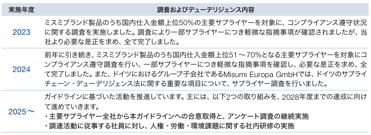 当社グループでは、ミスミブランド製品の供給など、当社にとって優先的にアンケート調査すべきサプライヤーを購入金額をベースとして特定しています(ただし仕入金額のみならず、サプライヤーの代替可能性なども含め総合的に判断し特定)。